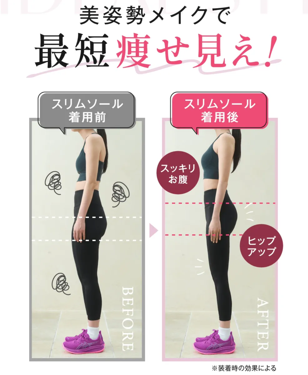 「SlimSole」は、運動を頑張るのは苦手だけど綺麗でいたい!という女性におすすめのインソールなんです。