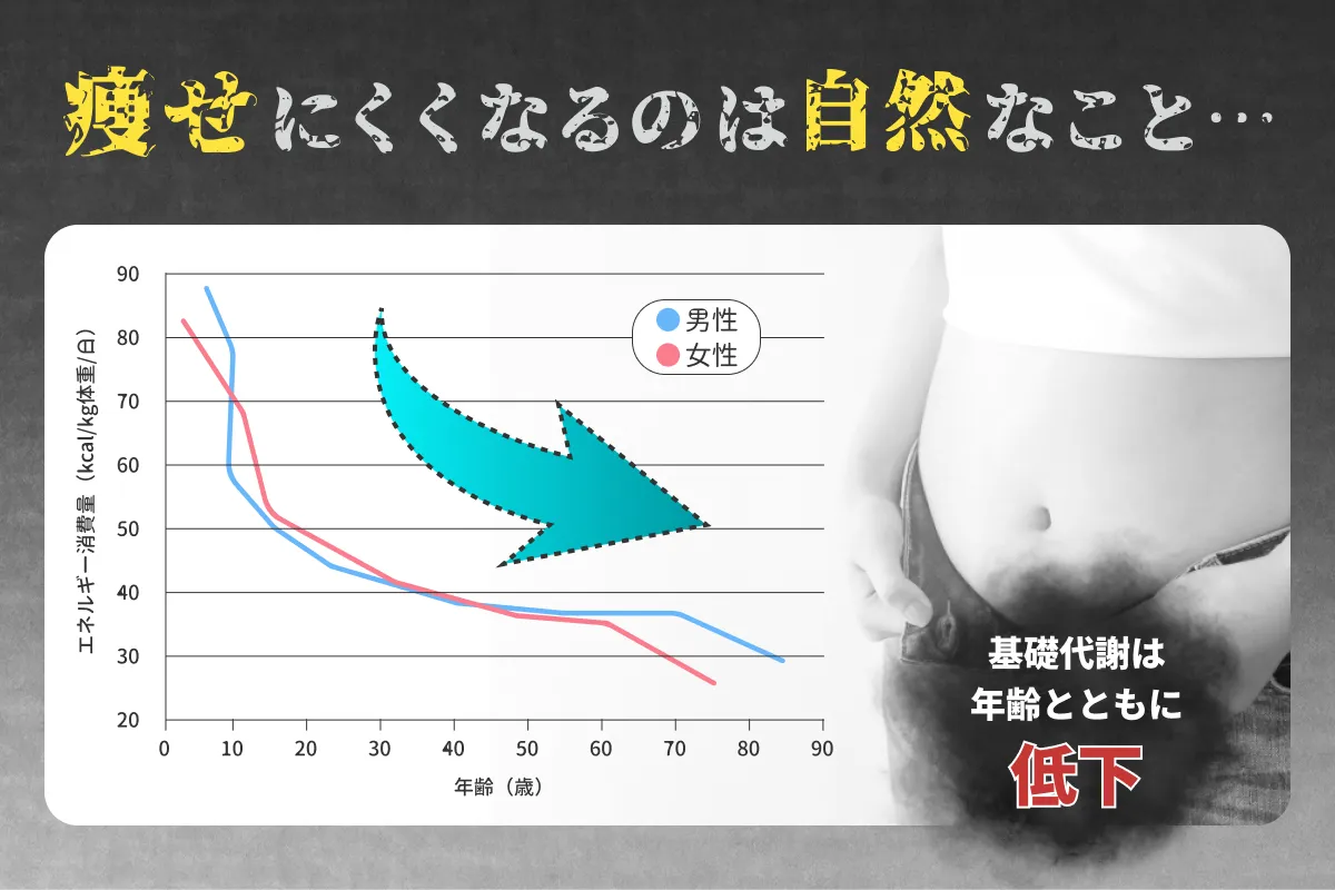 厚生労働省の研究でも、加齢に伴って基礎代謝が低下することが示されています。
