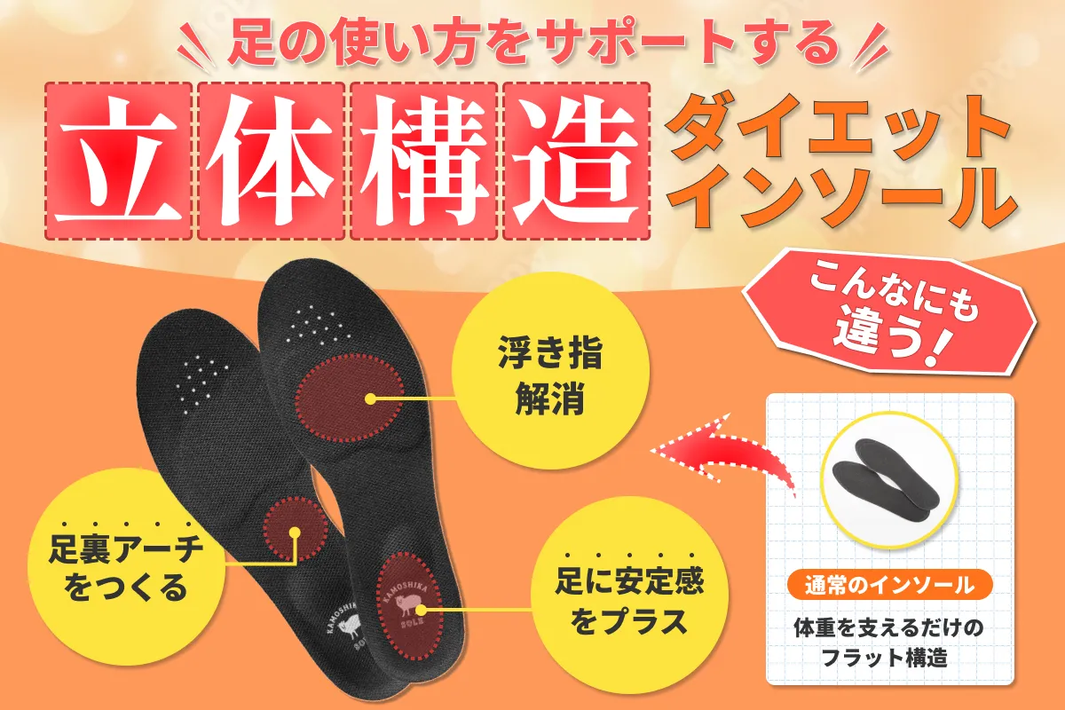 普段使っている靴に入れるだけで、毎日の歩きが運動に変わってしまうダイエットインソール。