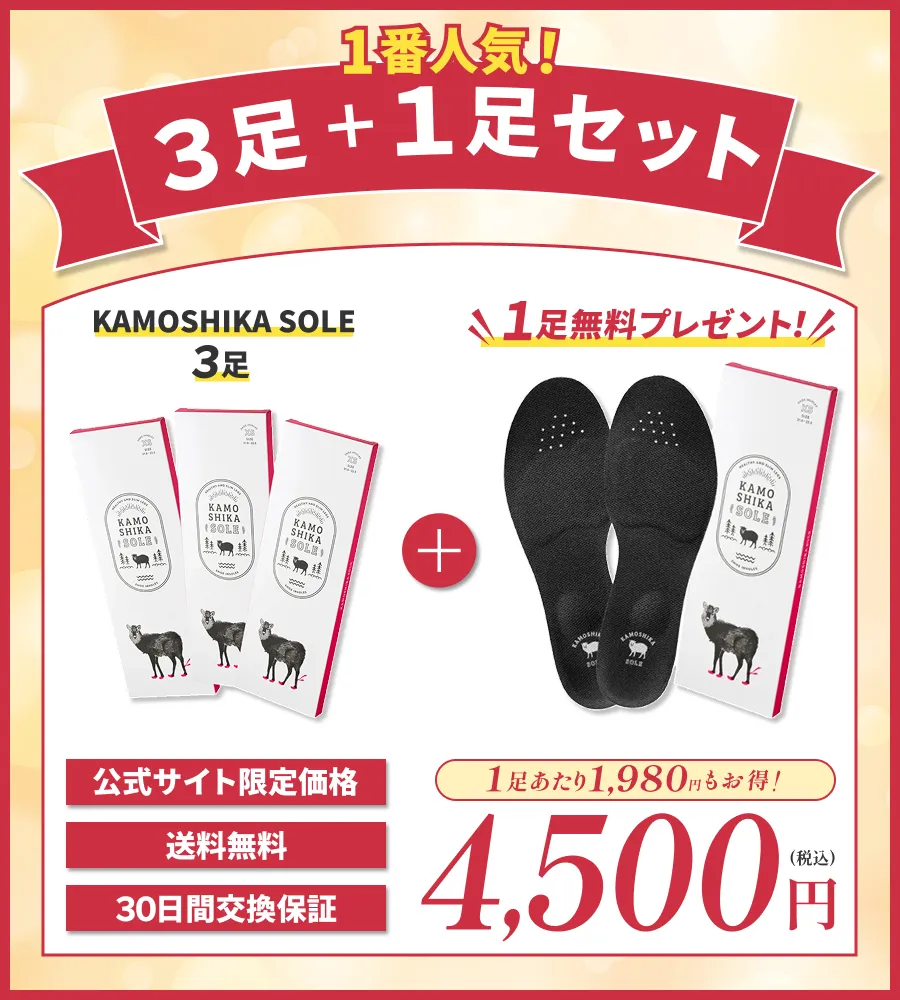 「カモシカソール」は、楽天ランキング ダイエット健康部門で1位*1を獲得した、履くだけで痩せ体質になるダイエットインソールです。