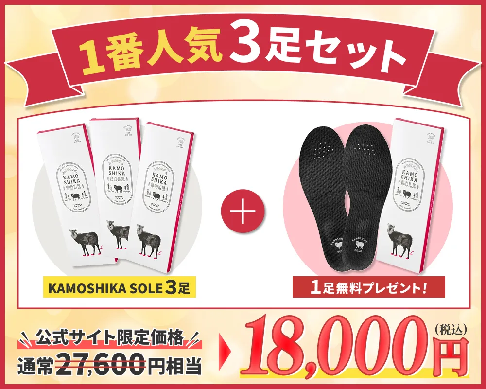 今なら公式サイト限定で、一番人気の3足セットを購入で1足無料プレゼント!
