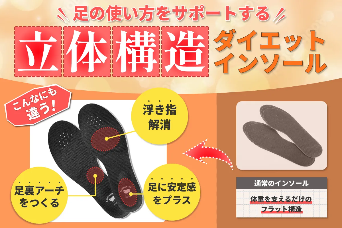 普段使っている靴に入れるだけで、毎日の歩きが運動に変わってしまうダイエットインソール。