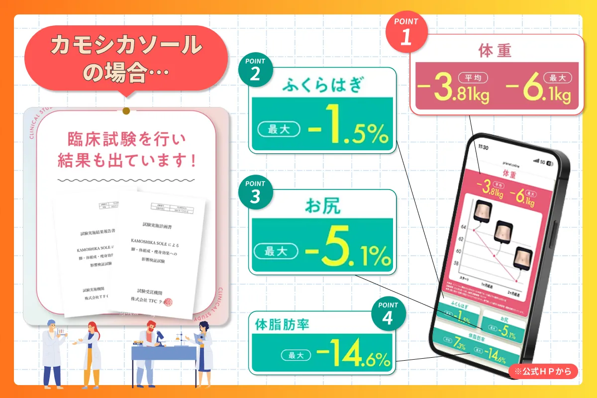 「履いて歩くだけで本当に変わるの?」と不安な方でも、きちんと検証されていると思うと、前向きに試しやすいですよね。
