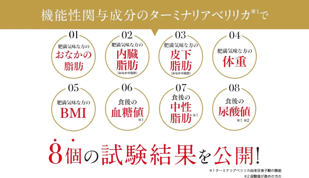 この成分は臨床試験で、サプリ業界でも優れた下記8つの項目でサポート効果が確認されています!