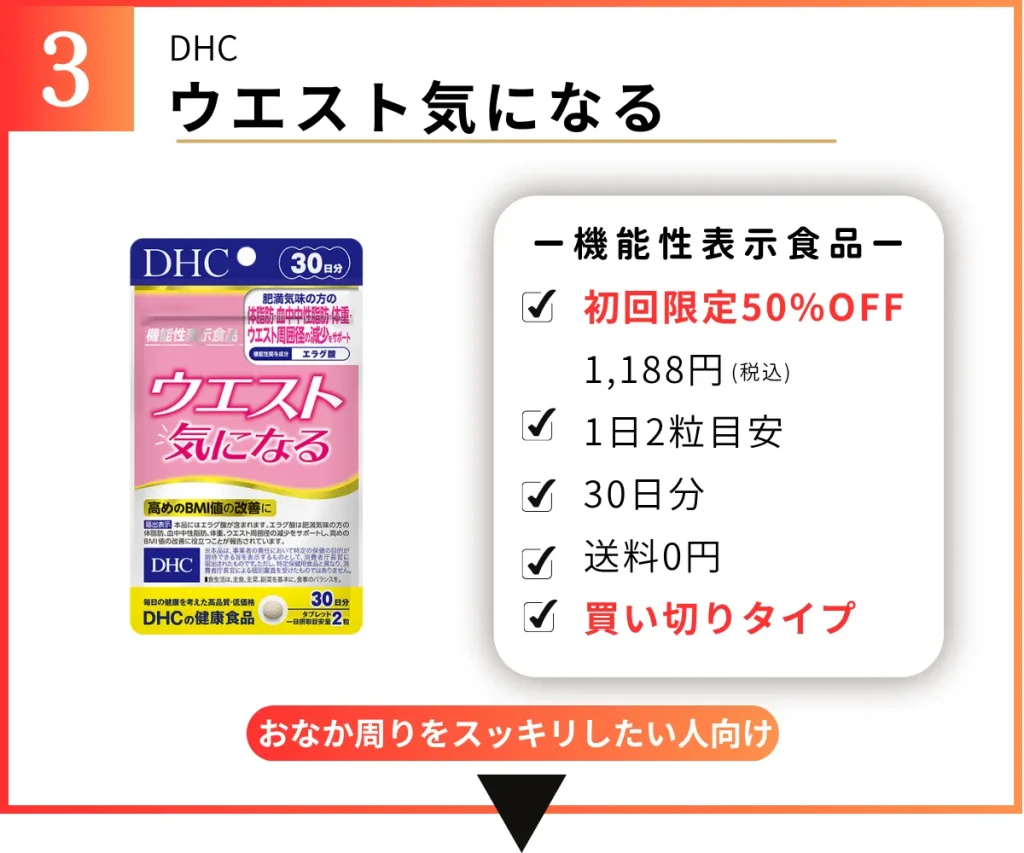 そんなDHCの「ウエスト気になる」ですが、お得に試せるキャンペーン実施中です!